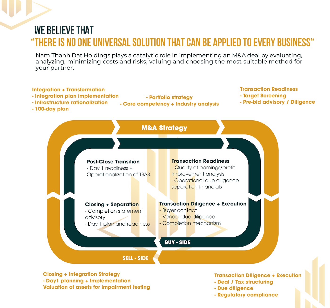 - Nam Thanh Dat Holdings provides comprehensive advice to buyers and investors throughout the entire lifecycle of an M&A transaction